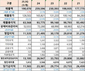 [バイオ記者チ・ヨンジュン] 三進製薬は安定したオンラインカジノ登録ボーナス高成長と収益性を維持している。当第3四半期は、オンラインカジノ登録ボーナス高が緩やかに増加し、営業利益もコスト効率化により収益性が向上しました。しかしながら、たな卸資産の拡大や借入金総額の増加により、短期運転資金の負担が増大する要因となっております。しかしながら、負債比率は70%未満で安定した水準を維持しており、流動比率は125%を記録しており、流動性の面で構造的なリスクが生じる可能性は限定的です。 ◇第3四半期累計オンラインカジノ登録ボーナス高2286億ウォン、営業利益226億ウォン…金融監督院の電子開示で17日も「費用効率」維持}