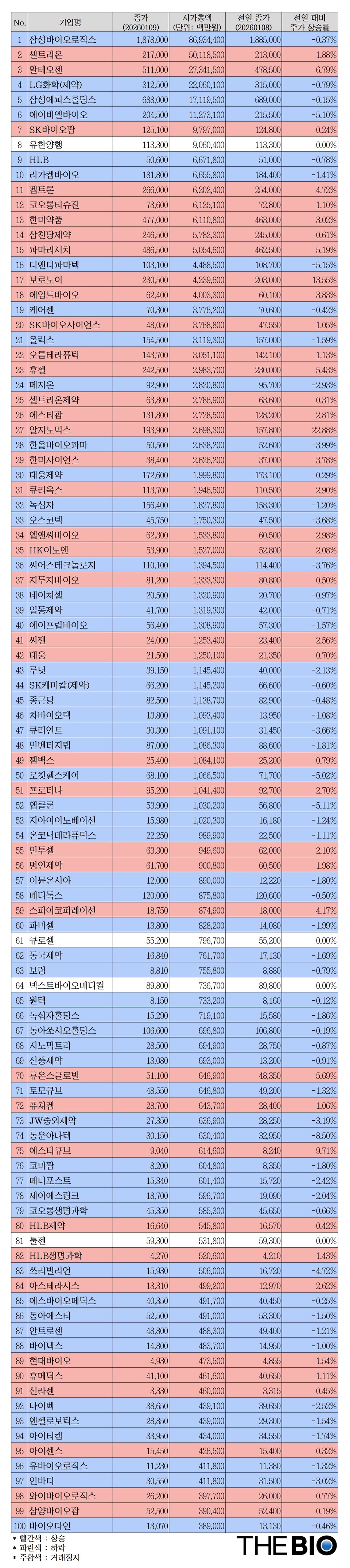 [時価総額モニター] 「トップ 100」上場最新 オンラインカジノオ医薬品企業 (1 月 9 日)